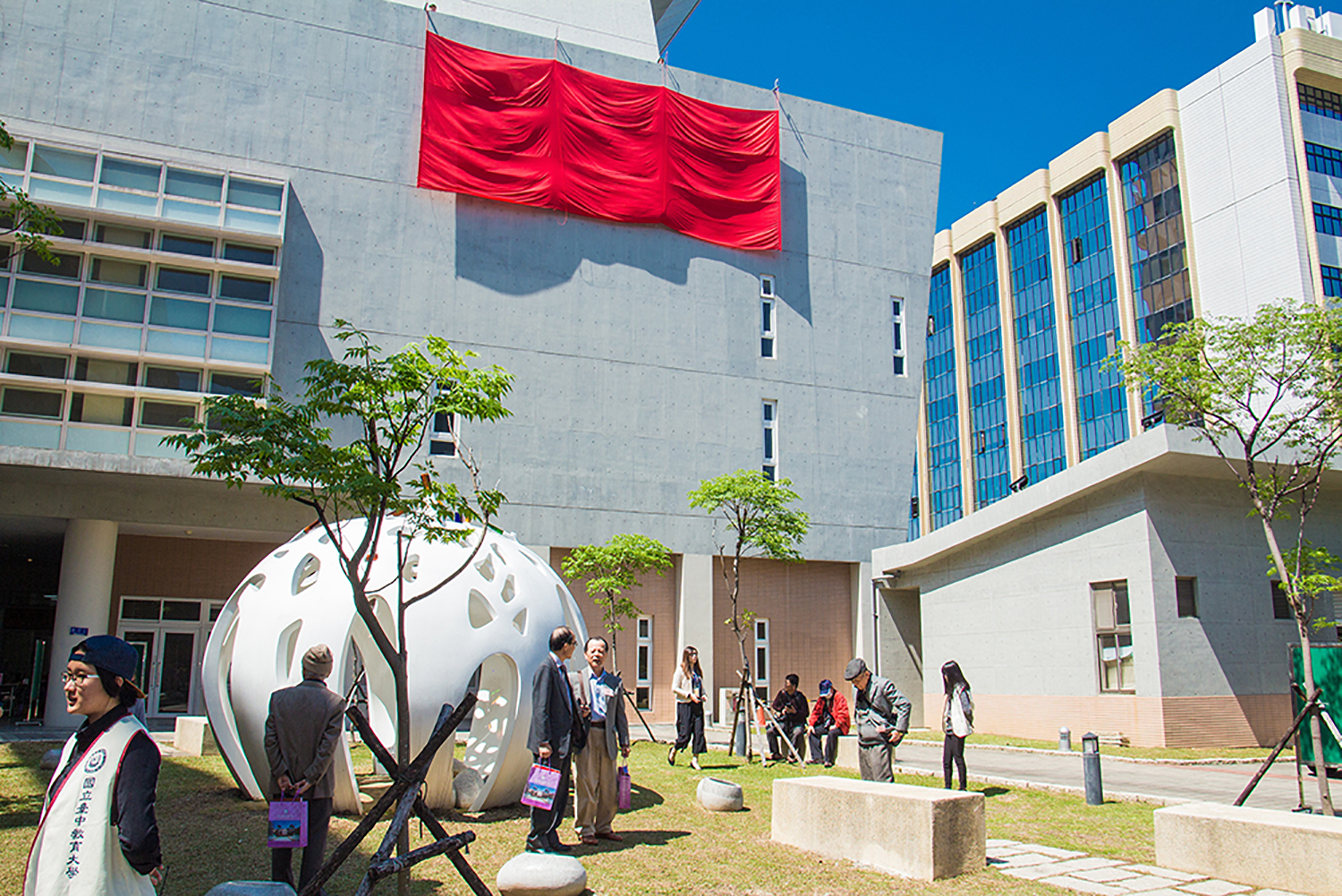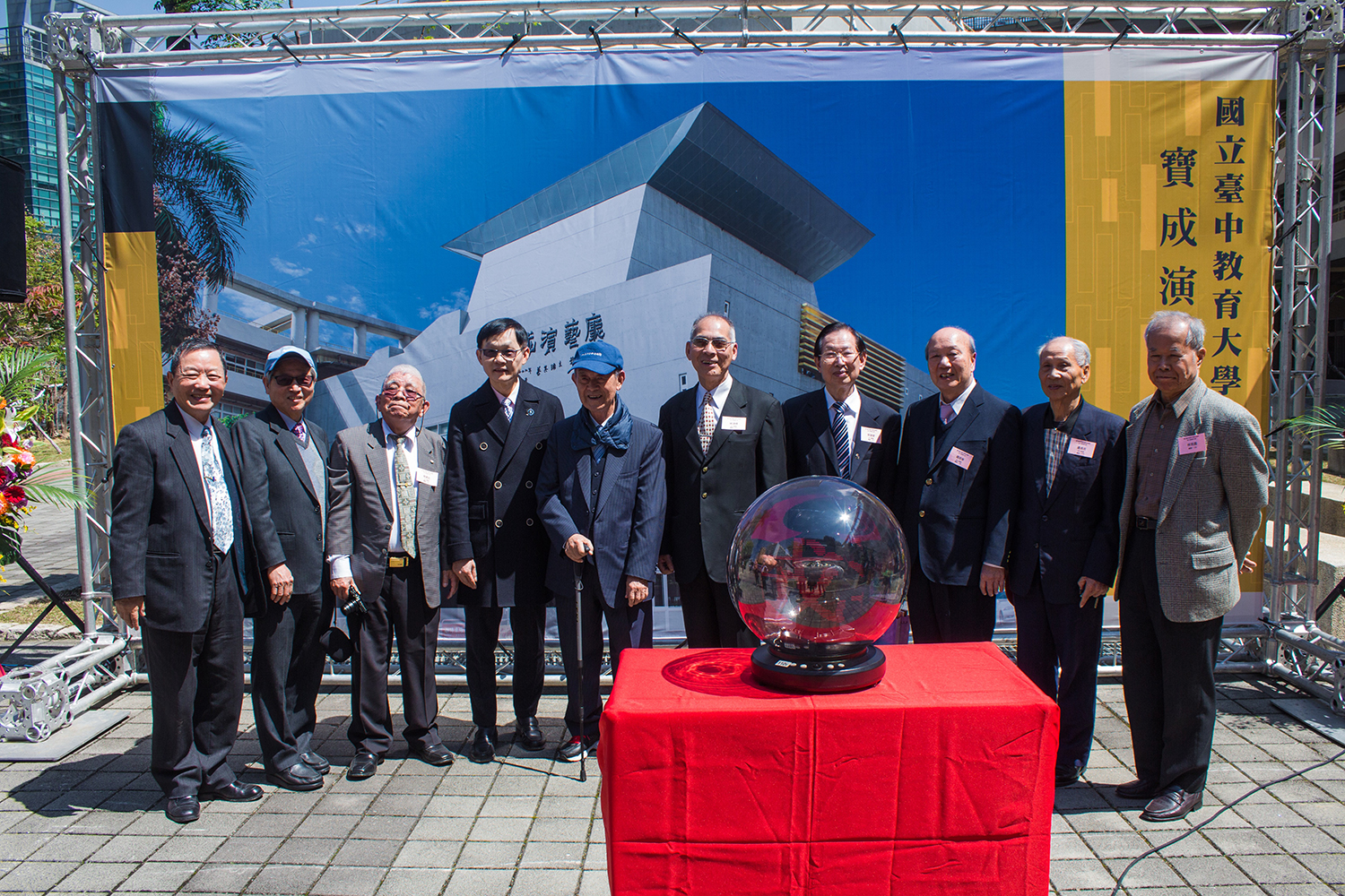 為感謝校友寶成國際集團創辦人蔡其瑞先生對母校愛護與贊助,也感佩其企業對文化古物保存與藝文活動的支持不遺餘力,乃將英才校區演藝廳以其企業名號予以命名為「寶成演藝廳」,並邀請第一屆國家文化藝術基金會國家文藝獎得主,及105年第36屆行政院文化獎得主鄭善禧教授(曾任教於本校美術系17年)為演藝廳招牌題字,以表師範精神傳承意義。